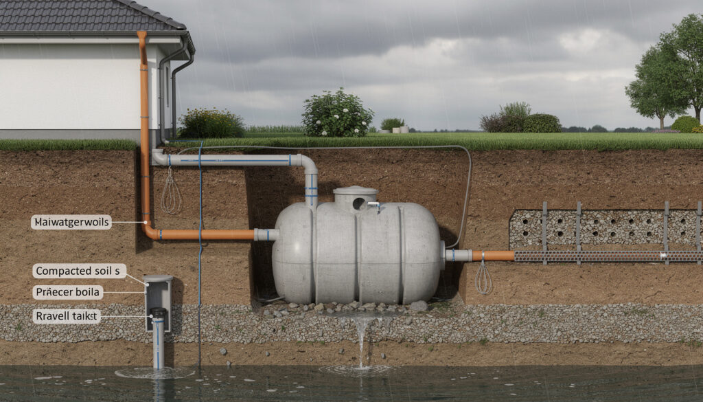 L’étude de sol (hydrogéologique) est la première étape clé. Elle permet d’analyser la capacité du terrain à absorber et filtrer l’eau, afin de choisir la solution la plus adaptée. En 2026, son coût se situe généralement entre 500 € et 1 500 € selon la complexité du terrain.